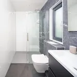 Die Badezimmer in der Luxembourg Nature Retreat - Mamer Lodge sind mit einer getrennten Toilette und einer Dusche ausgestattet.